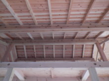杉の梁、集成材の梁、適材適所で耐久性の高い強い構造を作っております。